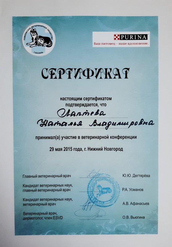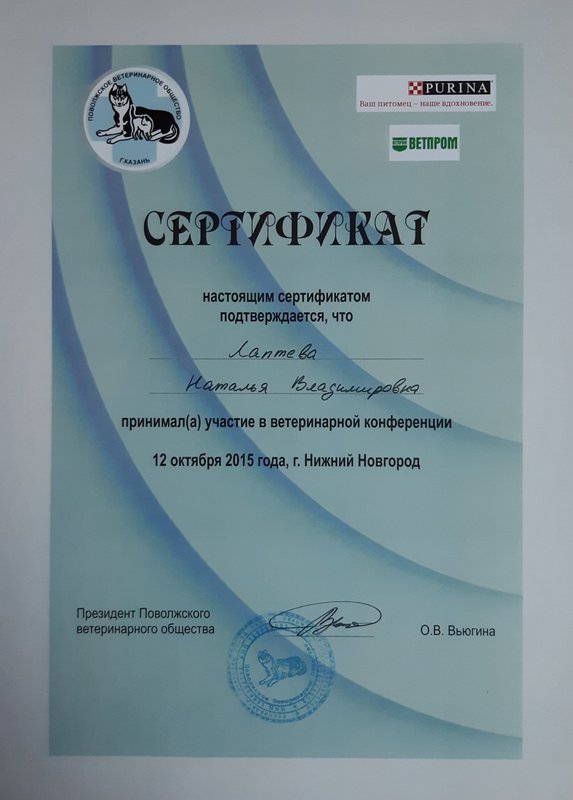 3) участник конференции Purina Partners "Вопросы современной ветеринарной медицины" от 31.10.2019 гор. Н.Новгород