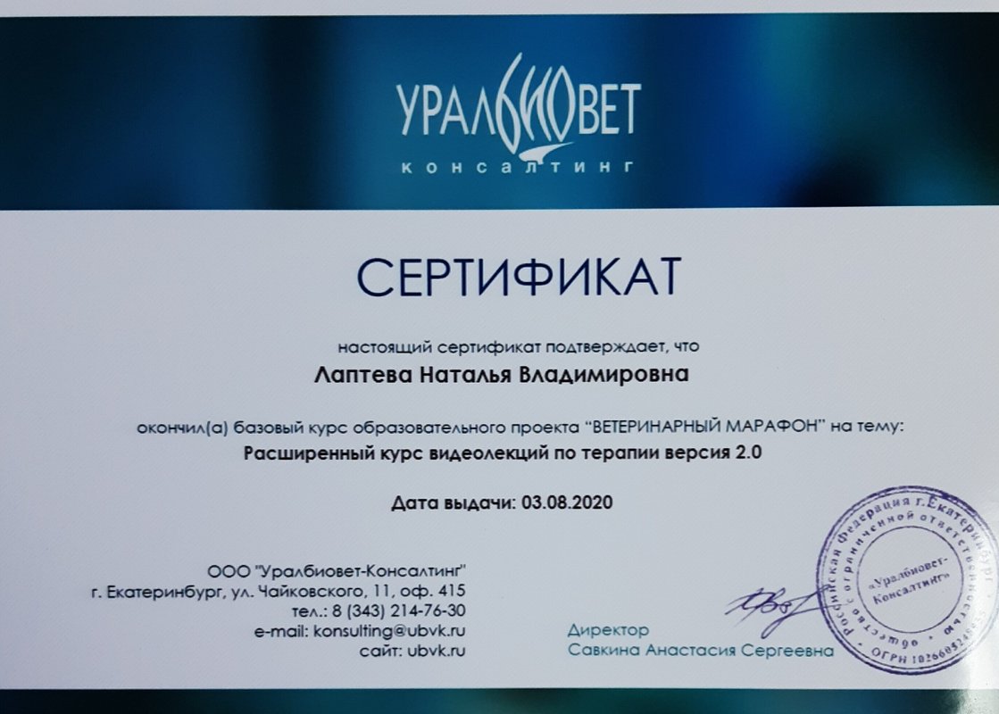 15) расширенный курс образовательного проекта "Ветеринарный марафон" на тему Нефрология от 18.09.2023 "Уралбиовет консалтинг" гор. Екатеринбург