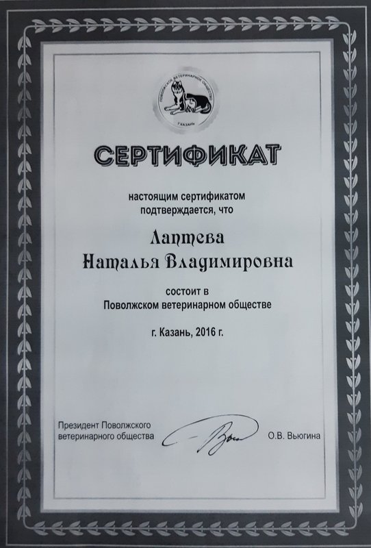 5) участник мастер класса "Уролитиаз в клинической практике" от 18.04.2019 "Поволжское Ветеринарное Общество" город Казань