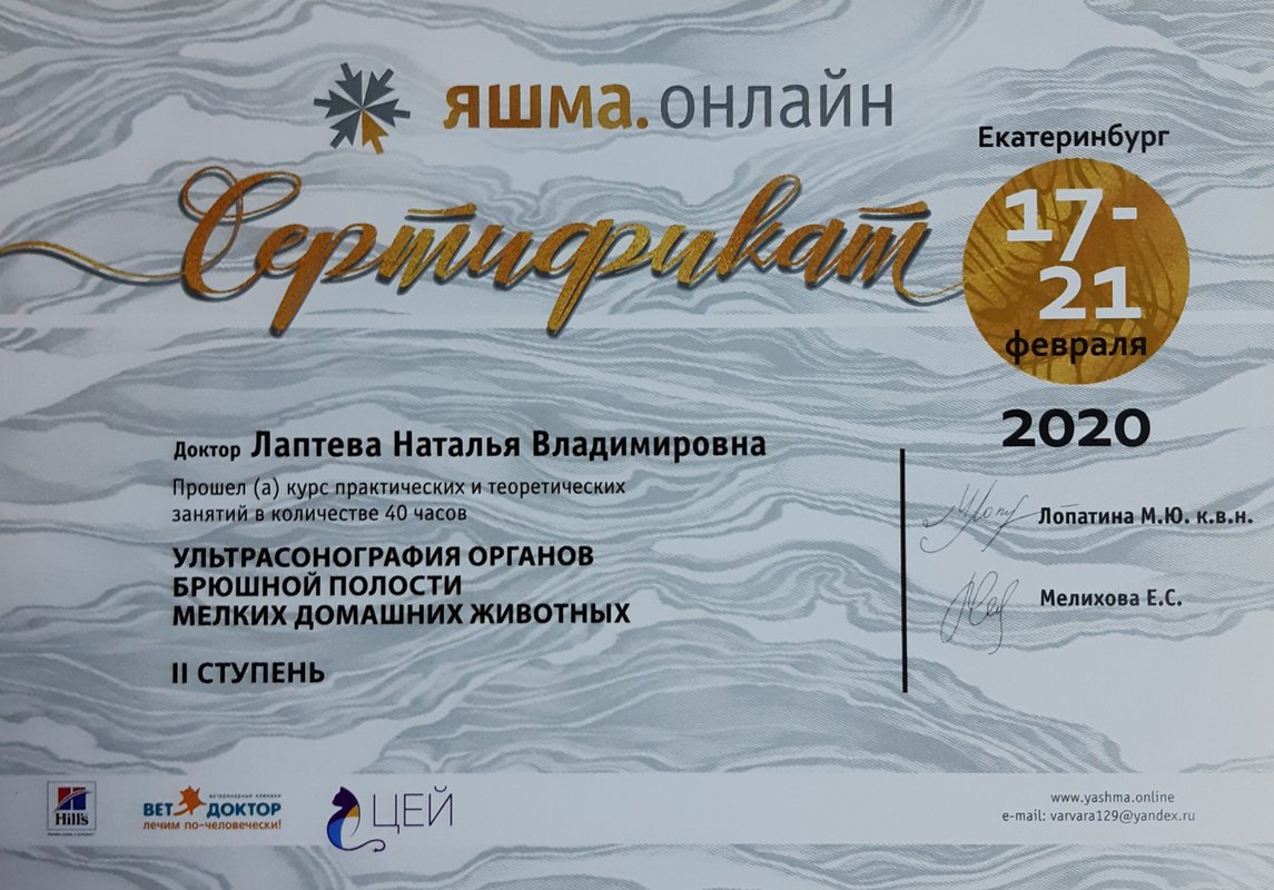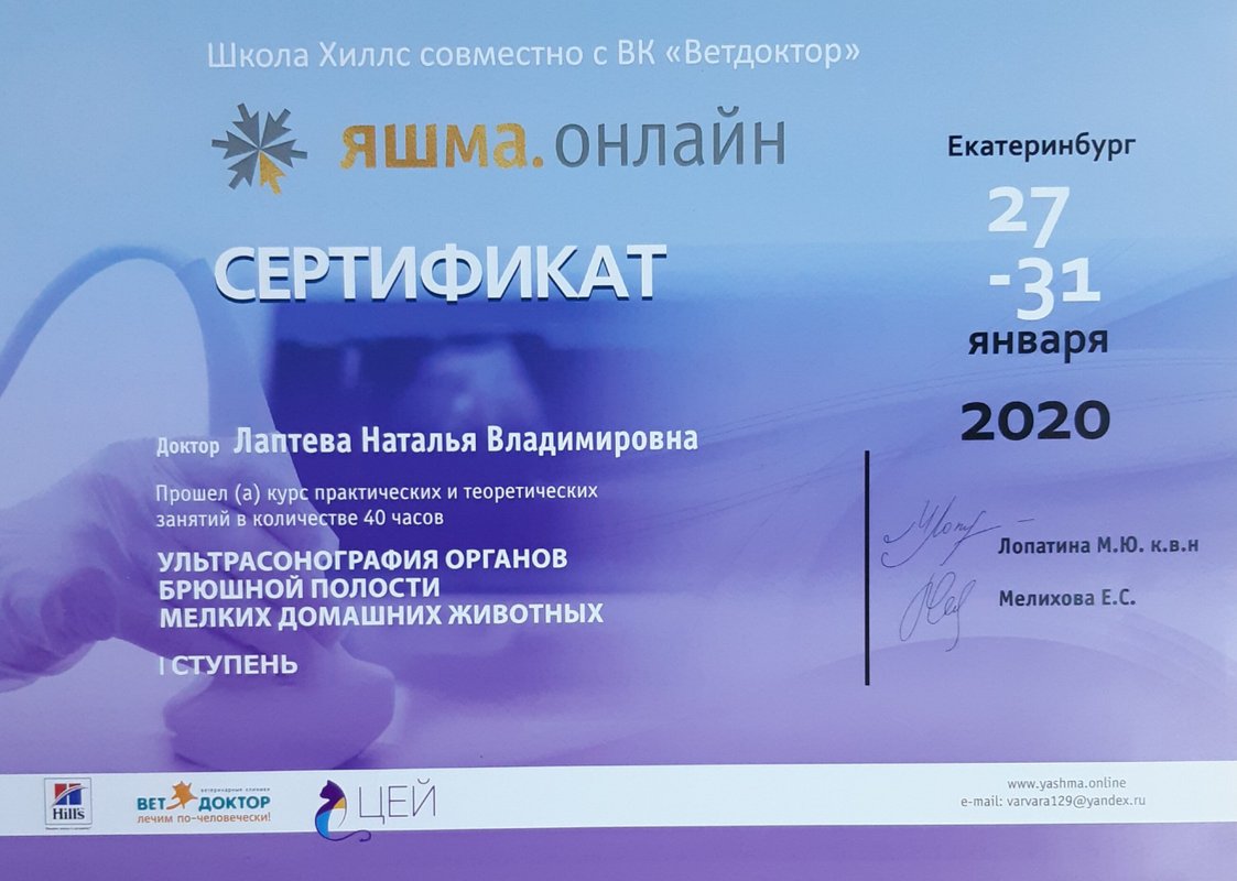 «Ультрасонография сердца и глаза мелких домашних животных III ступень», 07-11.12.2020 г., г.Екатеринбург.