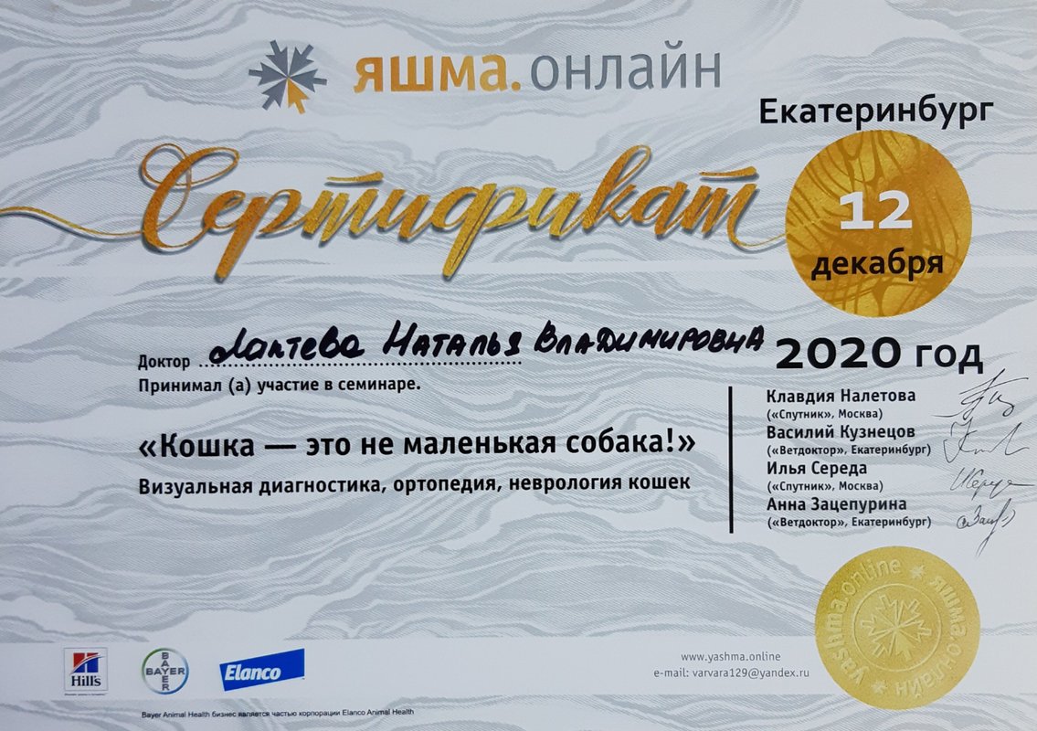 8) участие в школе постдипломного образования Hill's на тему "Основы дерматологического приема для врачей общего профиля" 26.02.2021 гор. Москва